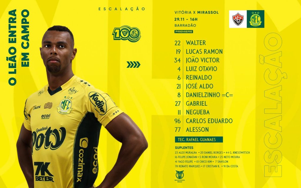 Confira as escalações oficiais de Vitória x Mirassol pela 36ª rodada do Brasileirão