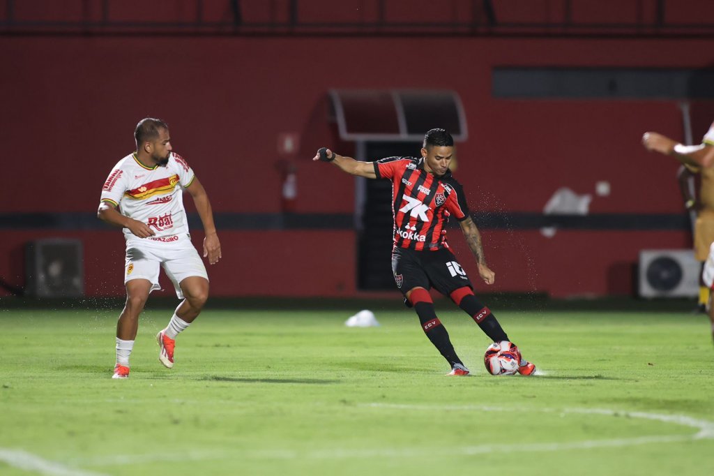 Antes de retornar para o 2° tempo, o técnico Jair Ventura promoveu a primeira mudança do Vitória no jogo: o meia Matheuzinho entrou na vaga do zagueiro Edu.