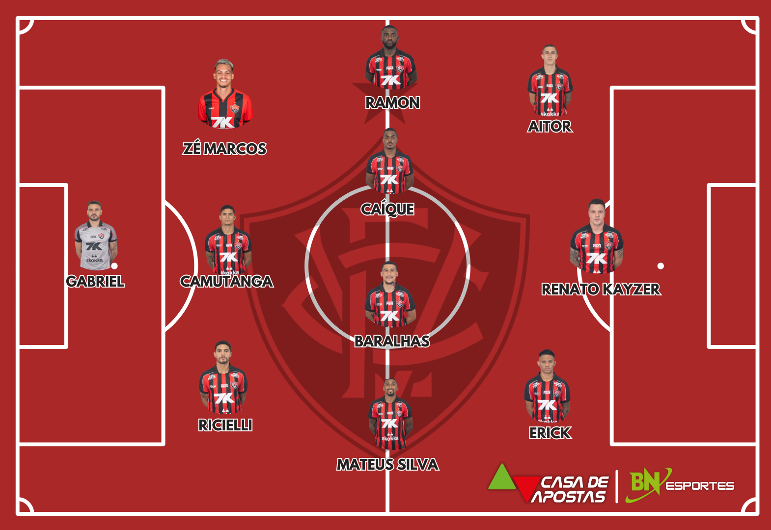 Vitória: Gabriel; Ricielli, Camutanga e Zé Marcos; Mateus Silva, Baralhas, Caíque e Ramon; Aitor Cantalapiedra, Erick e Renato Kayzer. Técnico: Jair Ventura