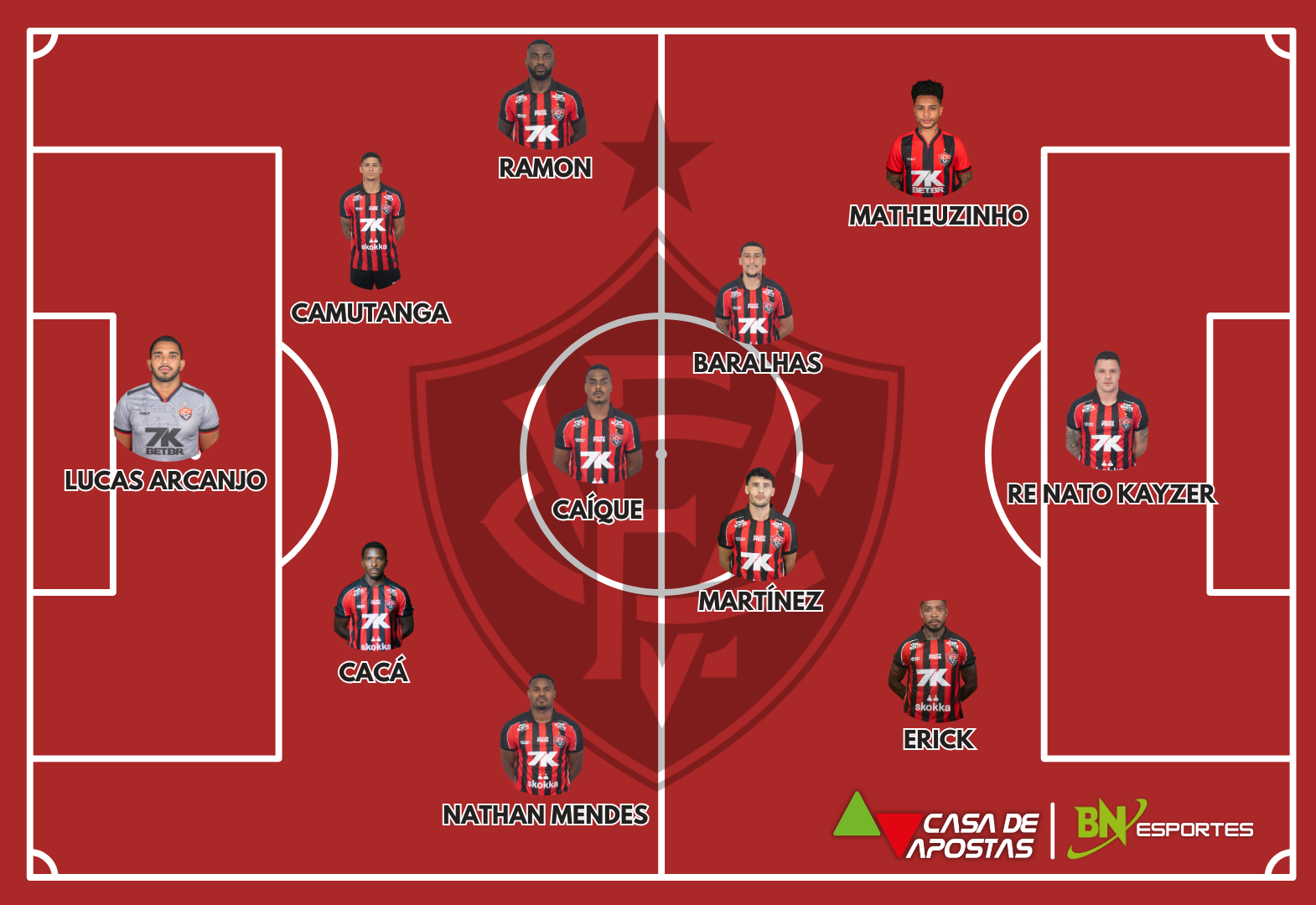 Vitória: Lucas Arcanjo; Nathan Mendes, Camutanga, Cacá e Ramon; Caíque Gonçalves, Gabriel Baralhas e Martínez; Erick, Matheuzinho e Renato Kayzer. Técnico: Jair Ventura.