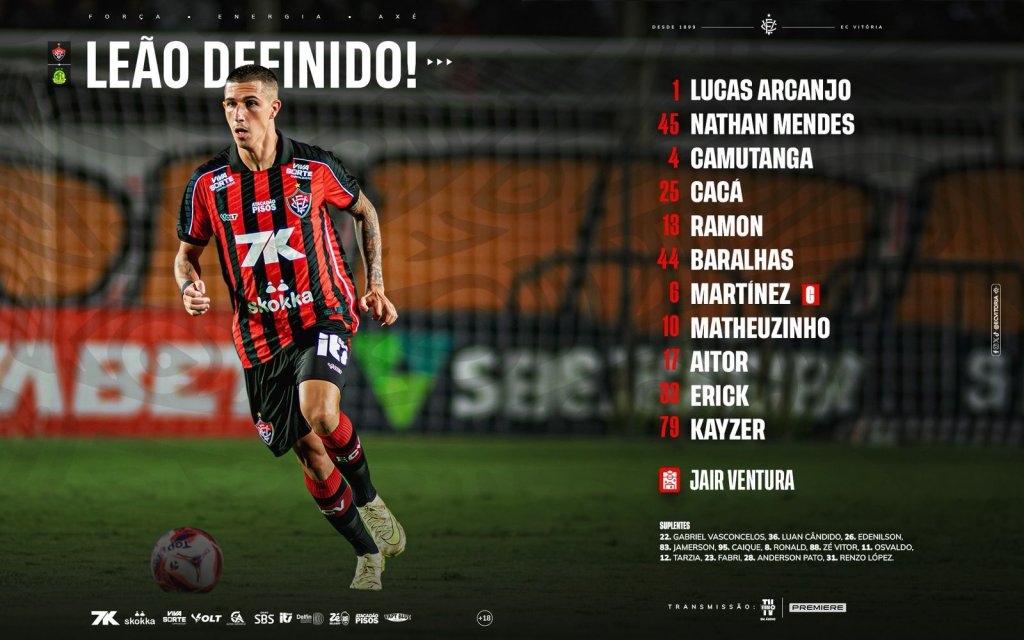 Confira as escalações oficiais de Vitória x Mirassol pelo Brasileirão 2026