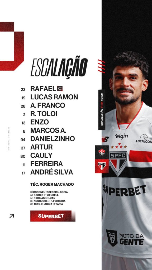 Confira as escalações oficiais de Vitória x São Paulo pelo Brasileirão 2026