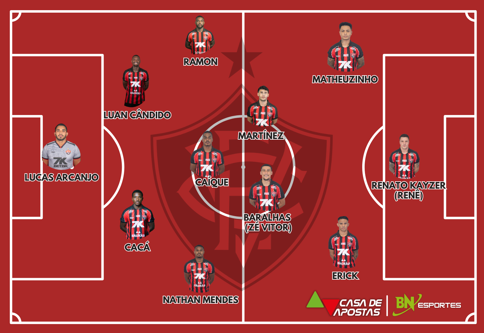 Vitória: Lucas Arcanjo; Nathan Mendes, Cacá, Luan Cândido e Ramon; Caíque, Zé Vitor e Martínez; Erick, Matheuzinho e Renê. Técnico: Jair Ventura.