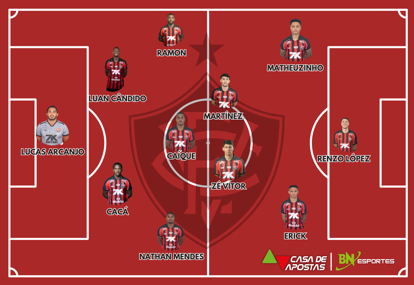 Vitória: Lucas Arcanjo; Nathan Mendes, Cacá, Luan Cândido e Ramon; Caíque, Zé Vitor e Emmanuel Martínez; Erick, Matheuzinho e Renzo López. Técnico: Jair Ventura.
