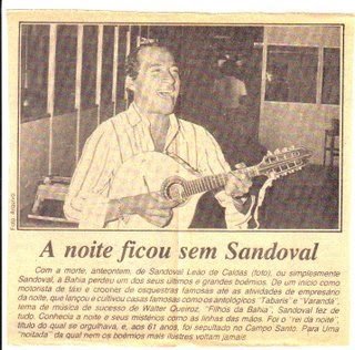 “Sandoval Caldas foi um ícone da noite baiana. Ele era chamado de Rei da Noite e era uma espécie de símbolo da boemia do Salvador. [...] Esse homem era uma figura folclórica, era um homem sorridente, usava roupas coloridas, roupas de palhaços, escolares. Ele era um homem que ele agregava”, descreveu Brito.