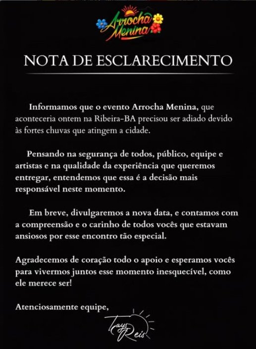 *De cara que nem São Pedro quer ver o retorno de Tays Reis a algum espaço na música;