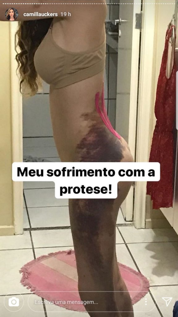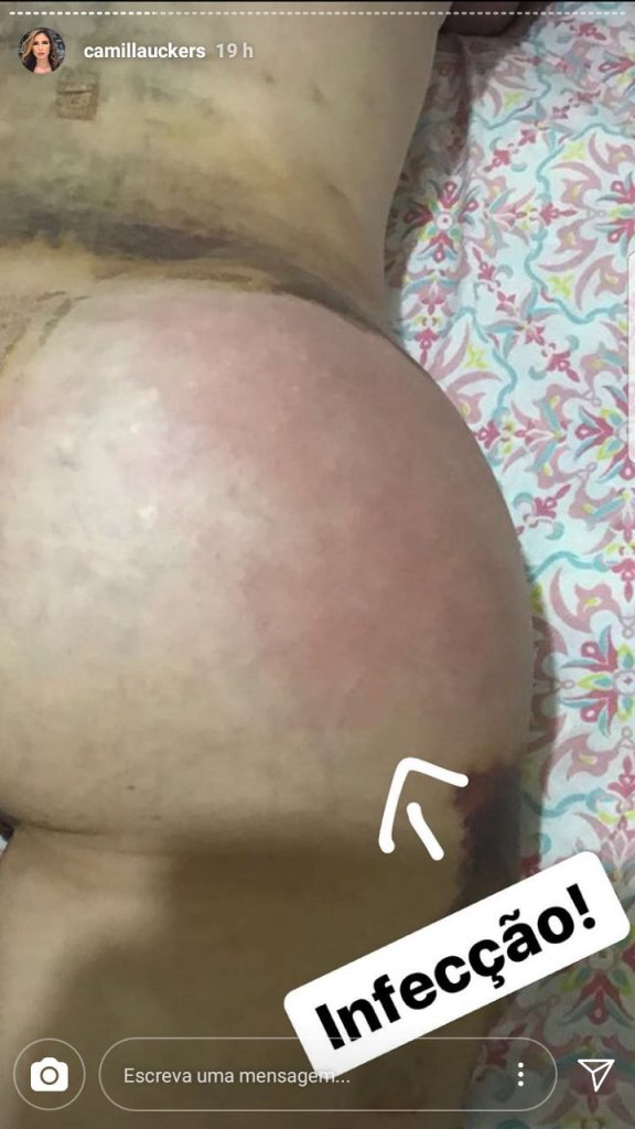 A humorista Camilla Uckers está passando por sérios problemas de saúde. Após se submeter a um procedimento para colocar próteses na região da bunda, Camilla teve complicações "logo após que saiu da sala de cirurgia". Ela decidiu colocar os implantes por causa da dificuldade “de aceitar a bunda antiga”. Através de vídeo postado nas redes sociais, ela disse que “estava com febre, [secreções] de pus" e que precisou ser internada. Camilla afirmou que “teve que tirar a prótese e que poderia até tentar de novo, porém não quer”. Como consequência da inflamação, o nervo ciático da youtuber teria sido afetado, prejudicando a sua capacidade de andar. “Talvez eu precise me operar, porque tem um problema no meu pé, no nervo ciático. Estou sem pisar no chão porque dói”. Ela também fez um apelo para que os médicos trabalhassem no seu caso: “Eu quero que os neurocirurgiões me ajudem a andar. Eu não consigo andar, é uma dor insuportável”. Camilla admitiu que está gastando cerca de R$ 3 mil em remédios e que teve diagnóstico de anemia. Ela assegurou que irá procurar acompanhamento psicológico ou psiquiátrico. Apesar do acontecido, a humorista garantiu que não irá adiar o lançamento do clipe para a música "Paredão", com a funkeira "Mulher Pepita". Alguns famosos, como a cantora Pabllo Vittar e Andressa Urach, prestaram apoio.