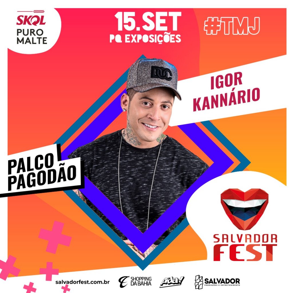 O cantor e deputado federal Igor Kannário é mais uma atração confirmada para a 14ª edição do Salvador Fest, que em 2019, comemora o retorno do Palco Pagodão. A participação do pagodeiro em uma das maiores festas da Bahia vem a atender diversos pedidos dos fãs do príncipe do guetto, que já foi figura marcante no evento.