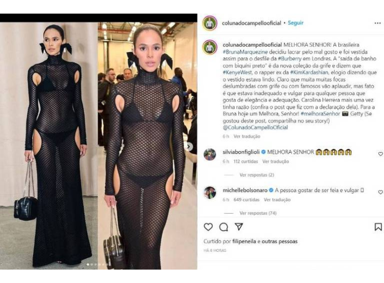 “A pessoa gostar (sic) de ser feia e vulgar”, escreveu Michelle nos comentários do post que avaliava Bruna com um vestido preto transparente.