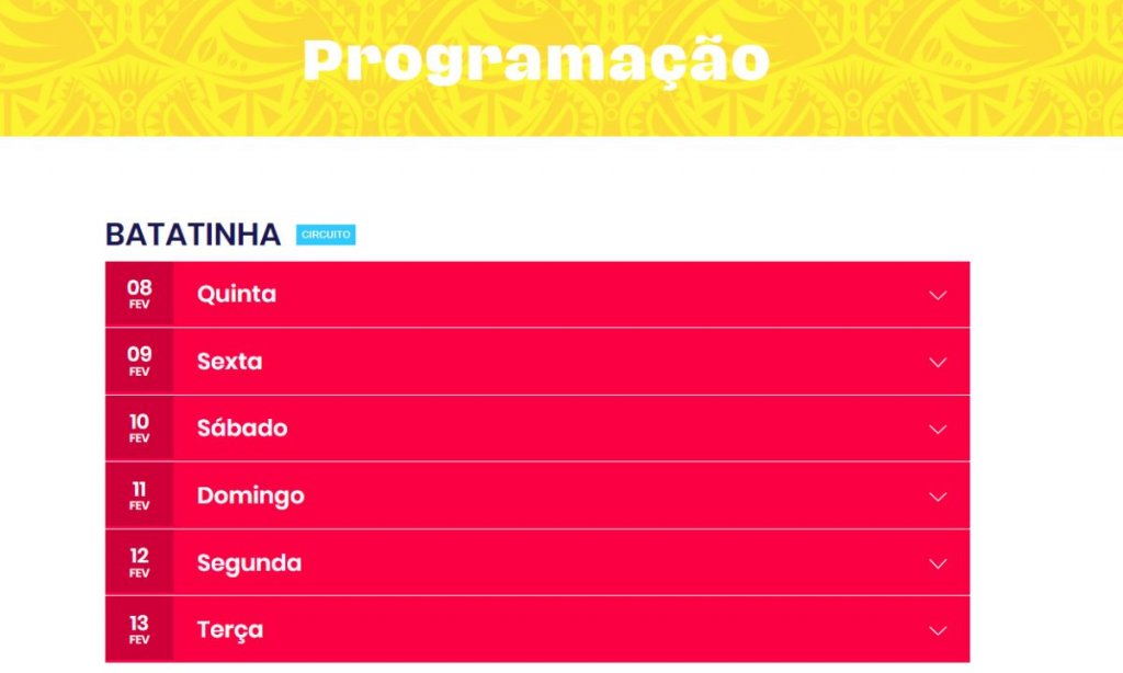 No primeiro dia de festa a programação do Pelourinho tem início às 20h. Já os outros dias começam mais cedo, pela tarde. Entre as atrações de destaque estão Filhas de Gandhy, Kizumba, Cortejo Afro, Bloco da Saudade e mais. (Clique na foto para a programação completa)