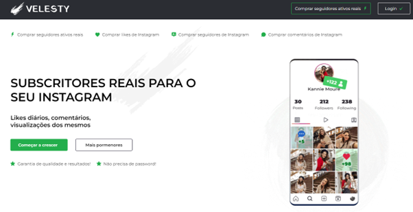 Velesty é um serviço popular para aumentar seguidores no Instagram, que oferece um público ao vivo de alta qualidade.