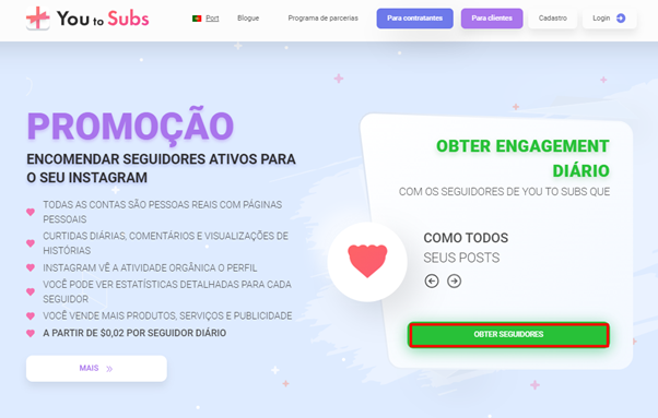Acesse o site You to Subs. Na tela principal, encontre o botão “Solicitar assinantes” e clique nele.