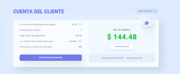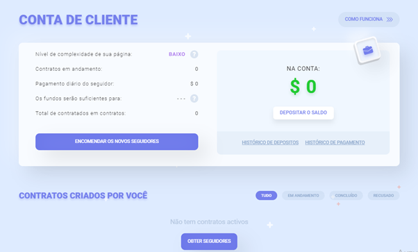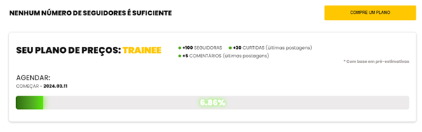 Vá para sua conta pessoal. Após o programa analisar o perfil e selecionar os métodos de promoção adequados, terá início o recrutamento do público. Nesta página você pode acompanhar a programação do serviço e também, se necessário, adquirir um novo pacote tarifário.