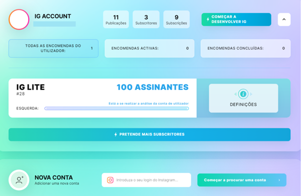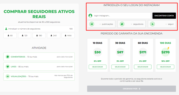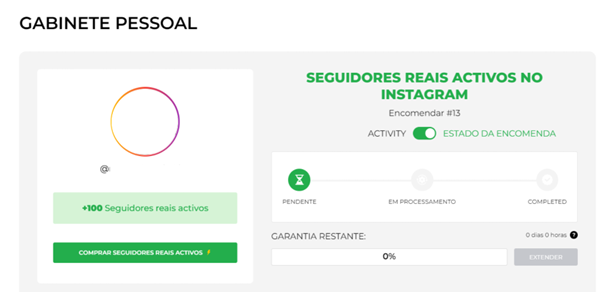 Para proceder à encomenda de seguidores, clique em “Encomendar novos seguidores”.