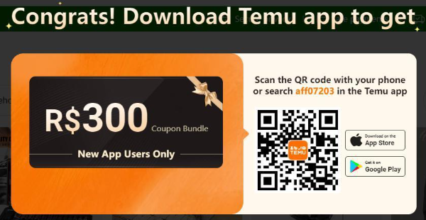 Código promocional exclusivo da TEMU: Use o código “aff07203” para obter até 30% de desconto.