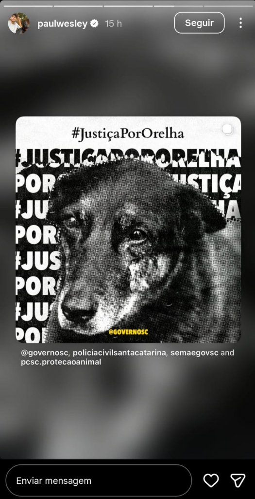 O ator Paul Wesley, astro da série The Vampire Diaries, utilizou suas redes sociais nesta quarta-feira (28) para participar do movimento “Justiça por Orelha”, em referência ao cachorro que morreu após ser torturado por adolescentes em Florianópolis.