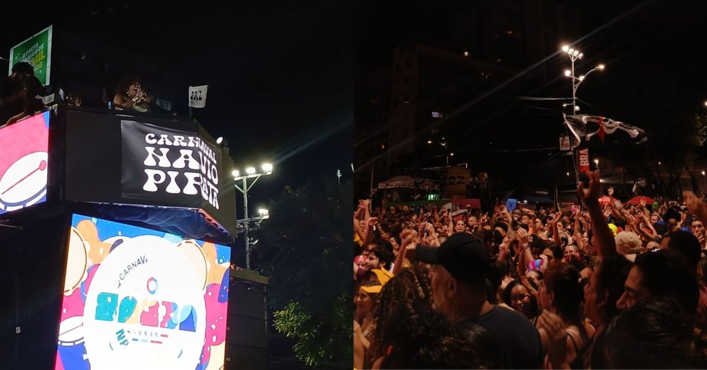 O circuito Osmar (Campo Grande) foi palco de uma das passagens mais politizadas e com torcidas pelo Oscar do Carnaval 2026, tudo isso ainda neste começo de noite de sábado (14). O Navio Pirata, trio do grupo BaianaSystem, arrastou uma multidão que transformou o centro da cidade num espaço de engajamento social, unindo o som percussivo da banda a diversas pautas políticas e culturais.