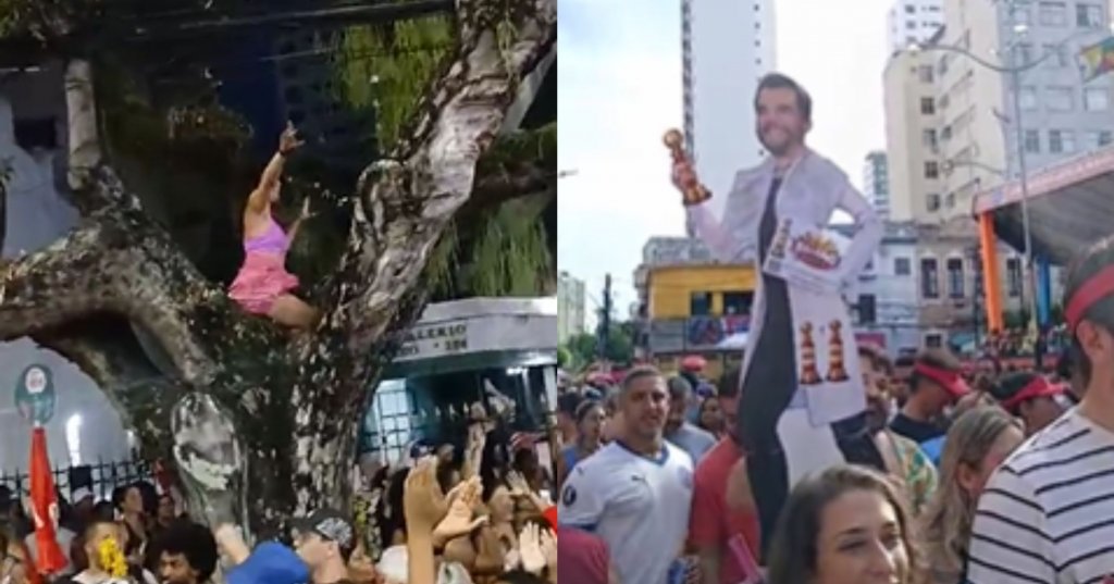 Entre os foliões, havia proliferação de cartazes com reivindicações trabalhistas, como o pedido pelo “Fim da Escala 6×1”, manifestações de apoio a presença do presidente da república e ao Partido dos Trabalhadores. Outra manifestação recorrente no público foi o apoio ao ator Wagner Moura, com mensagens que solicitavam o reconhecimento do artista brasileiro na campanha pelo Oscar.