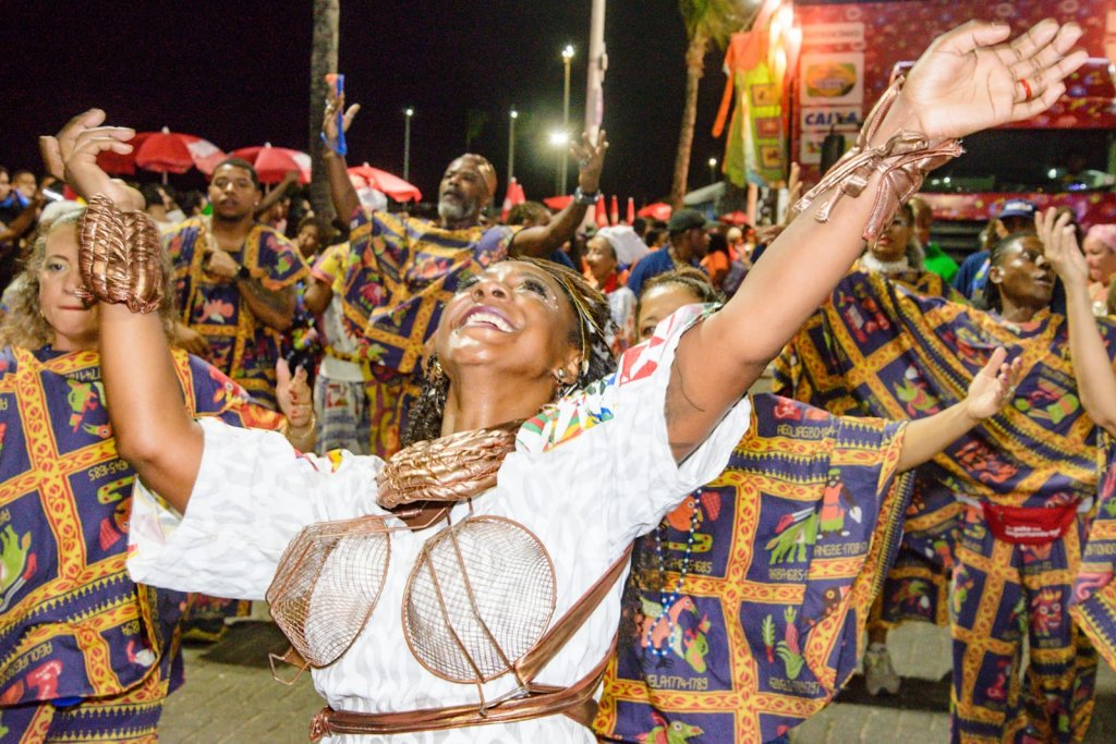 Em mais um dia de desfile, o Cortejo Afro levou colorido ao Circuito Dodô, na noite desta segunda-feira (16). Mesmo após ser “ultrapassado” na fila, o bloco afro levou toda a tradição para a Barra-Ondina, em um ano em que escolheu homenagear o Benin.