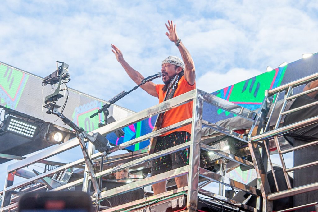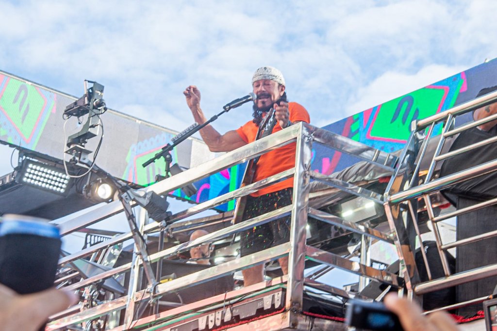 Um dos maiores ícones do carnaval baiano, o cantor Bell Marques iniciou o último dia de desfile do bloco Camaleão neste carnaval de 2026. Bell iniciou o desfile ao som do clássico 'Dê um grito aí', do chiclete com banana. Confira o momento abaixo: