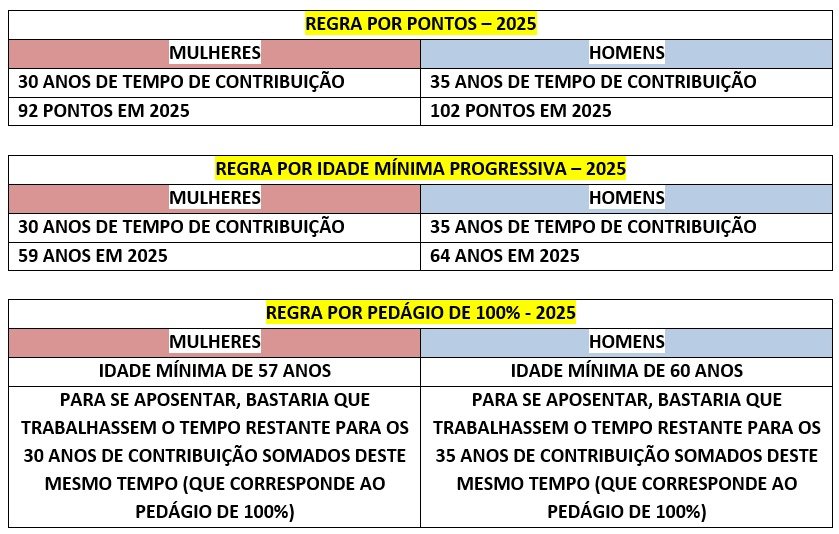 - E quais são as mudanças nas regras de transição para 2025?