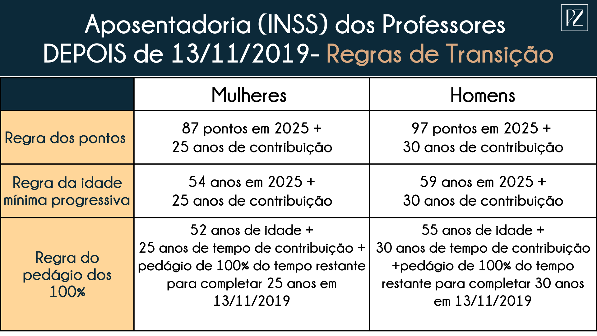 Para 2025, professores e professoras da educação básica (infantil, fundamental e médio) contam com a regra definitiva (para quem implementou os requisitos após 12/11/2019), e as regras de transição (para quem iniciou antes da reforma, mas só implementou ou implementará requisitos depois), que, em sua maioria, mudam de ano a ano. Vejamos: