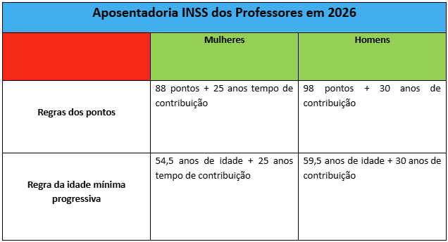 Como ficarão as regras de transição da aposentadoria do professor no INSS em 2026?