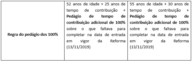 Já para aposentadoria com base na regra do pedágio de 100%, será a média de todos os salários de contribuição desde julho de 1994, e sobre esta será aplicado o coeficiente de 100% (art. 26, §3º, da EC nº 103/19), obviamente, sempre as rendas limitadas ao teto do INSS (hoje, em R$ 8.157,41) e no Salário Mínimo Nacional (R$ 1.518,00).