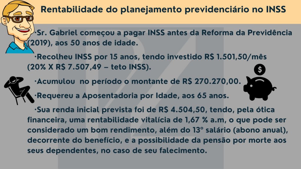 Não se pode também deixar de registrar que o retorno de um bom planejamento previdenciário no âmbito público é interessante, vejamos o exemplo: