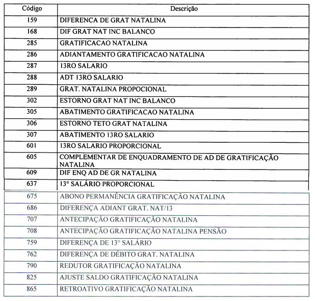 Entre as rubricas com nomes parecidos encontradas pelo CNJ estão, por exemplo, “adiantamento gratificação natalina” e “antecipação gratificação natalina”. Segundo o relatório da inspeção, não há no tribunal um documento com a descrição destes elementos, o que dificulta a auditoria da folha de pagamento. Além disso, não há um mapa de rubricas referente aos magistrados, com descrição de proventos e descontos. Veja abaixo a tabela com verbas repetidas que está no documento do Conselho: