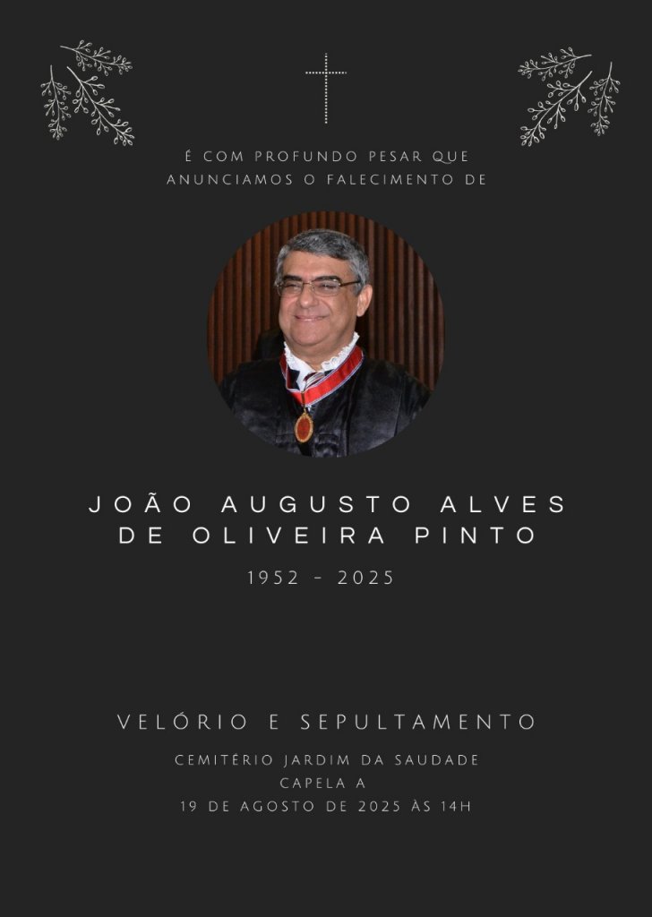 Faleceu na madrugada desta terça-feira (19) o desembargador do Tribunal de Justiça da Bahia (TJ-BA) João Augusto Pinto. O magistrado havia sofrido um Acidente Vascular Cerebral (AVC) no ano passado e permaneceu por um longo período internado. O velório e o sepultamento ocorrerão no Cemitério Jardim da Saudade, a partir das 14h.