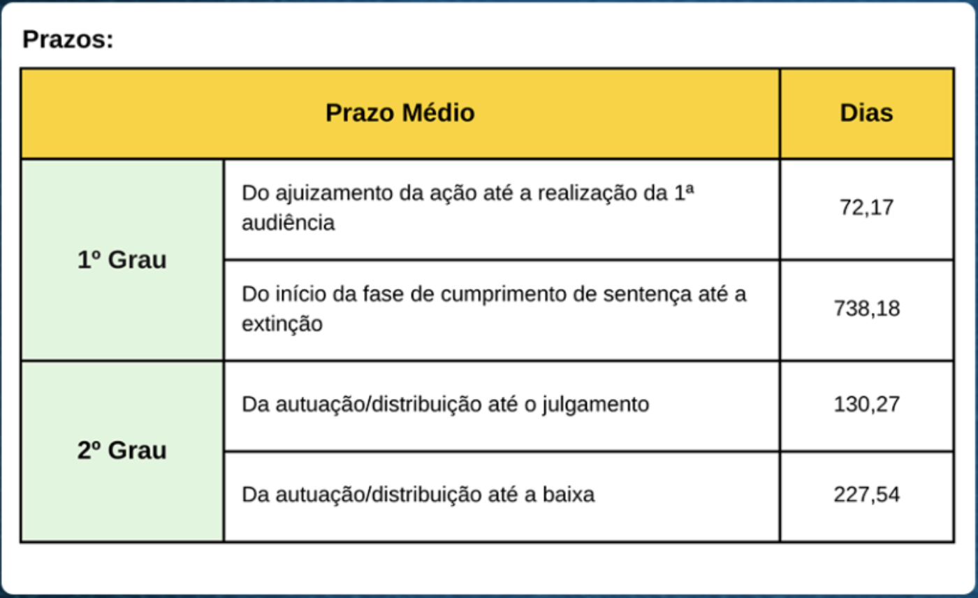 Os prazos médios registraram redução expressiva em relação a 2024. No 1º grau, o tempo médio entre o ajuizamento da ação e a realização da primeira audiência caiu de 93 dias para 72 dias. Já o prazo médio da fase de cumprimento de sentença até a extinção foi reduzido de 1.423 dias, em 2024, para 738 dias, em 2025, praticamente a metade. No 2º grau, também houve avanço. O tempo médio entre a distribuição e o julgamento passou para 130 dias, enquanto o intervalo até a baixa ficou em 227 dias, desempenho superior ao registrado no ano anterior, quando esse prazo ultrapassava 340 dias.