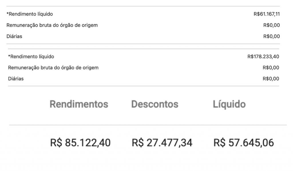 Os dados indicam que os valores elevados não são exceção, mas parte da realidade remuneratória da corte ao longo de todo o período analisado. Em setembro de 2025, desembargadores tiveram rendimento líquido entre R$ 98.963,76 de R$ 101.758,83. Mesmo em meses considerados de menor movimento, como fevereiro de 2025, os valores permanecem acima do teto, com rendimentos líquidos de R$ 57.645,06.