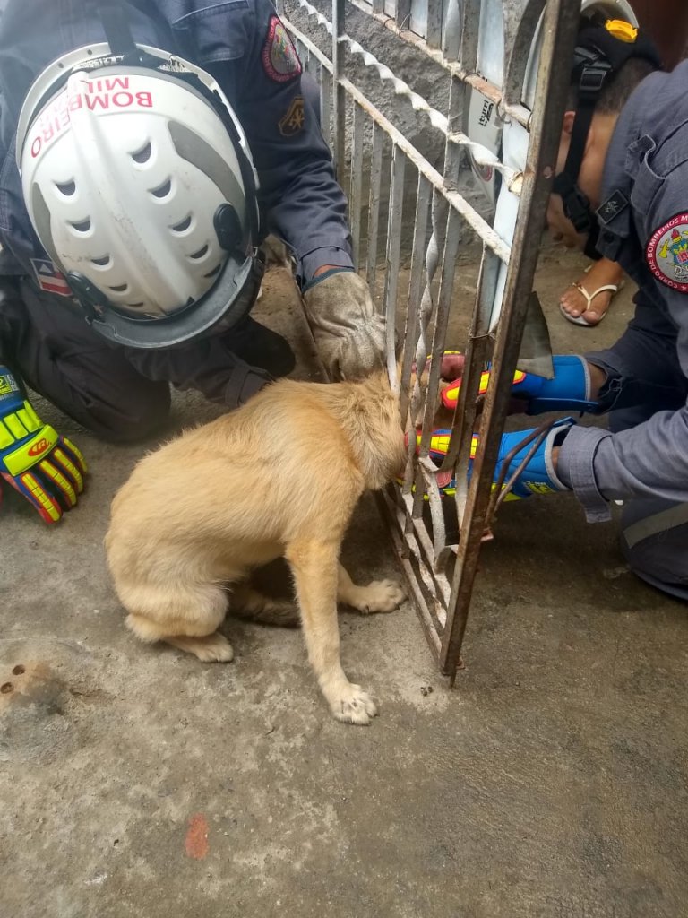 Ao entrar em casa, o animal teria forçado a passagem pelo portão e acabou ficando com a cabeça presa na estrutura. Foi quando a mulher acionou os bombeiros. Uma guarnição do 15° Grupamento de Bombeiros Militar (15° GBM/Paulo Afonso) foi ao local e começou o resgate.