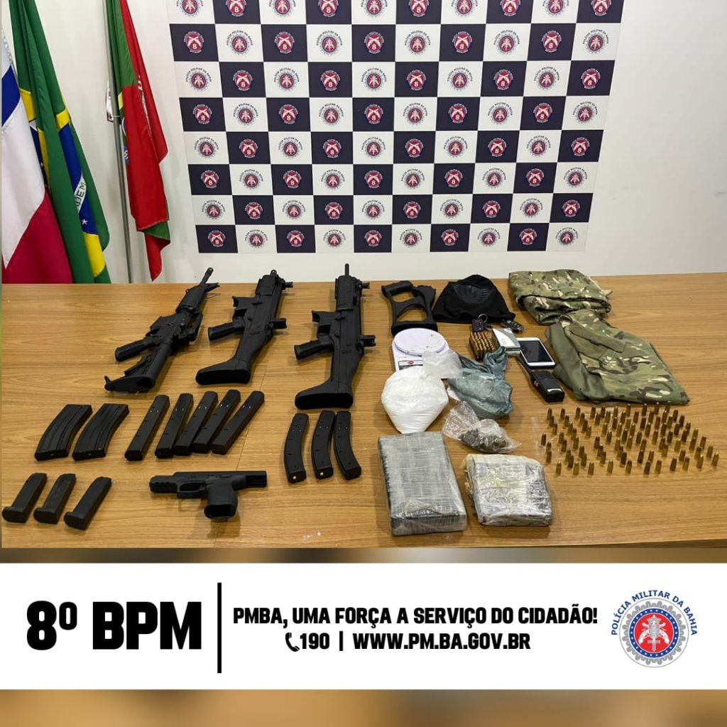 Vinte e duas armas de fogo, dentre elas um fuzil calibre 5,56, apreendido por alunos do IV Curso de Condutores de Cães no dia 29 de março, em Porto Seguro, que estava enterrado, também foram achadas através do odor dos materiais.