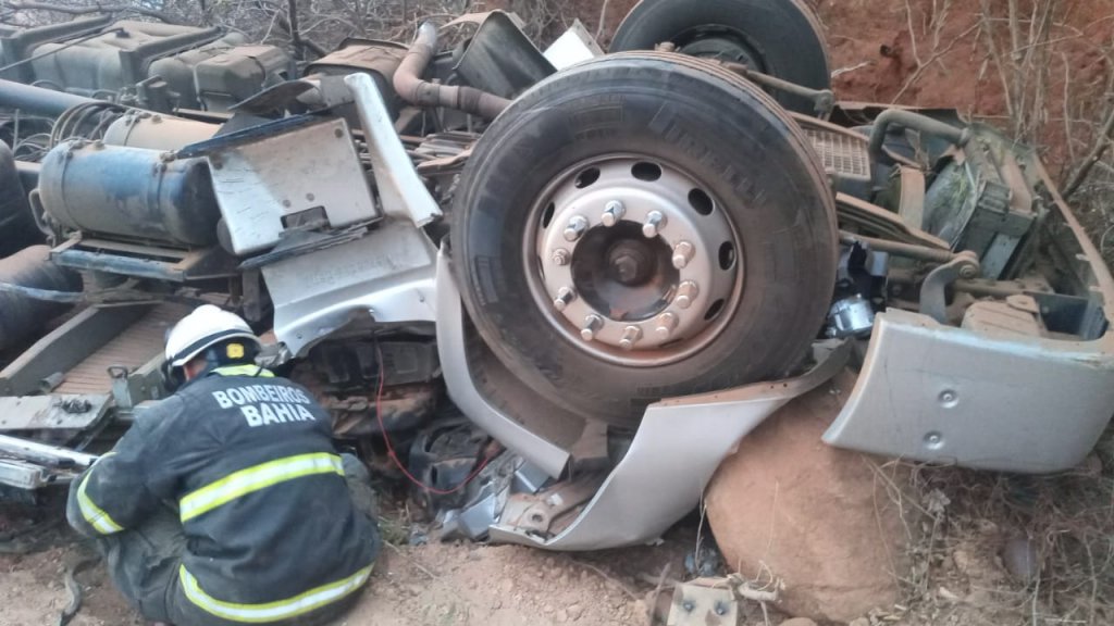 Um motorista ficou preso às ferragens após o caminhão que conduzia tombar em um trecho da BR-030 de Caetité, no Sertão Produtivo, Sudoeste baiano. O acidente ocorreu na madrugada desta quinta-feira (26) no trecho conhecido como Serra dos Brindes.