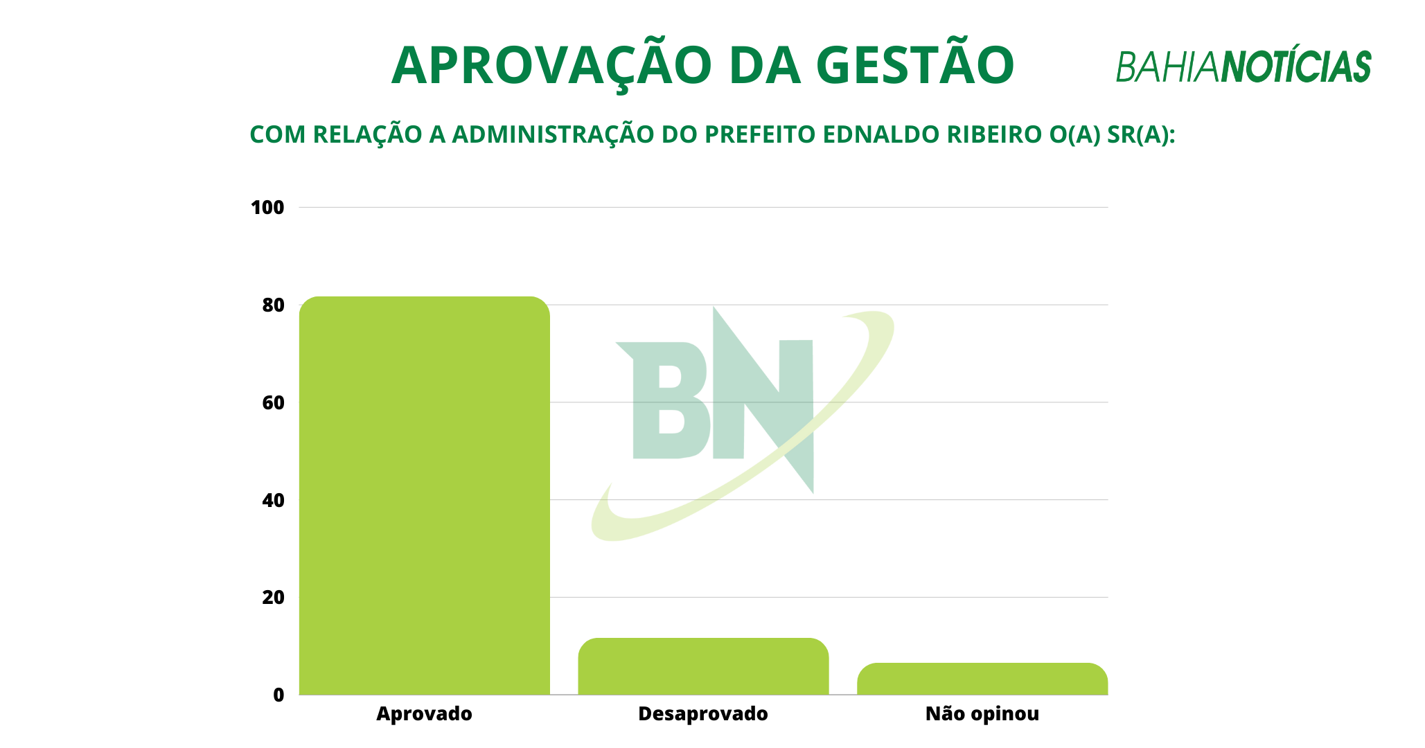 O atual prefeito de Cruz das Almas, Ednaldo Ribeiro, teve sua gestão aprovada por 81,76% dos eleitores e desponta como o favorito na corrida eleitoral do município, segundo o levantamento contratado pelo Bahia Notícias junto à empresa Séculos Análises e Pesquisas. O prefeito teve sua gestão desaprovada por 11,68% dos cidadãos entrevistados e outros 6,56% não opinaram.