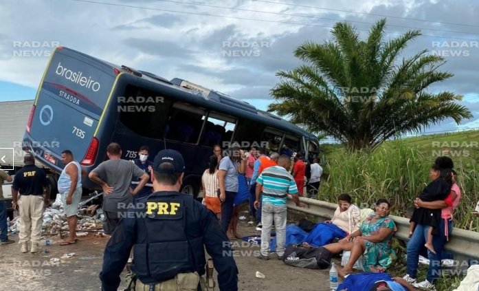 Idosa e motorista de caminhão morrem em batida que deixa outros 30 feridos no Extremo Sul baiano