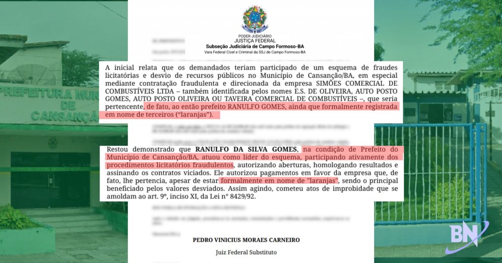 O ex-prefeito Ranulfo Gomes, apontado como o principal mentor, recebeu a pena mais severa, incluindo a suspensão dos direitos políticos por 14 anos e a perda de bens adquiridos ilicitamente. As informações foram reveladas pelo Calila Notícias, parceiro do Bahia Notícias.