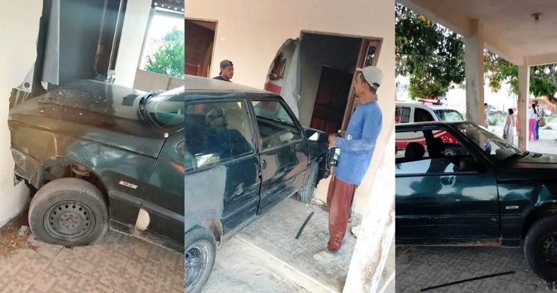 Ainda segundo o site, o Fiat Uno bateu na lateral de outro veículo e, em seguida, invadiu um terreno, colidindo contra a parede da residência. Parte da estrutura da frente da casa foi destruída com o impacto.