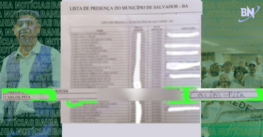 Fotografia da lista de presença com o nome e assinatura de Carlos Pitta | Foto: Montagem do Bahia Notícias