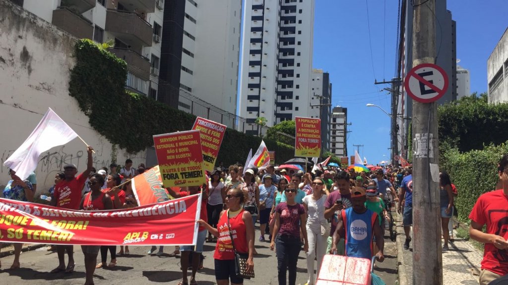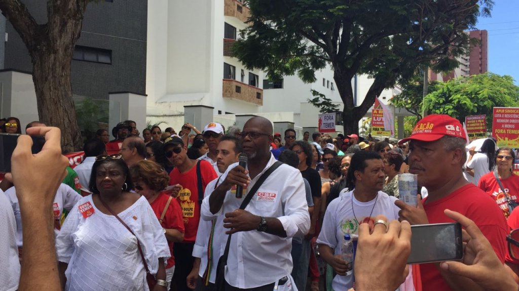 “Hoje a gente veio aqui manifestar contra a reforma da Previdência na porta do golpista usurpador Arthur Maia, para deixar registrado na história que nós trabalhadores não consideramos ele um deputado federal pela Bahia, mas sim um grande golpista traidor da classe trabalhadora”, afirma o presidente da CUT na Bahia, Cedro Silva.