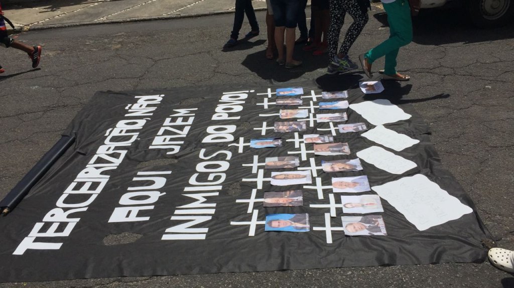 Um grupo de manifestantes se reúne na manhã desta sexta-feira (24) em frente ao condomínio Vivenda do Recanto, onde o deputado federal Arthur Maia (PPS-BA) tem um apartamento, contrários a aprovação do projeto de lei que amplia a terceirização para atividades fim e contra a reforma da Previdência, de cuja proposta Maia é relator. Entre os participantes do protesto estão lideranças do Psol, como o vereador Hilton Coelho e Hamilton Oliveira, além de representantes de entidades sindicais.