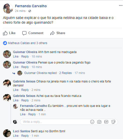 Nuvens de fumaça e forte cheiro de queimado foram percebidos por moradores da Cidade Baixa entre o início da madrugada e a manhã desta segunda-feira (2). Leitores do Bahia Notícias dizem ter acordado com o odor. Nas redes sociais, pessoas apontam ter visto a fumaça em locais como Bonfim, Ribeira e Caminho de Areia.