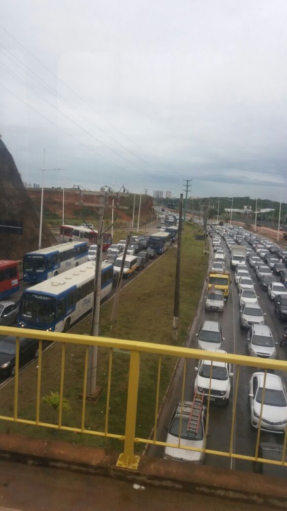 O alagamento no viaduto Ministro Mário Andreazza (clique aqui), na Avenida Paralela, na altura do São Cristóvão, causou congestionamento na via que já alcança as imediações do Shopping Paralela, no sentido Aeroporto.