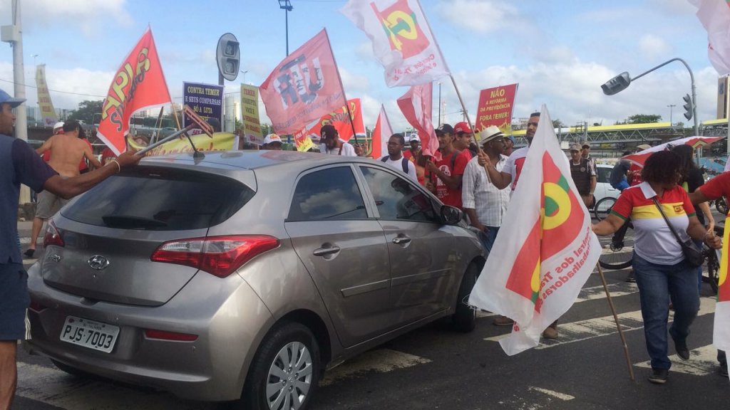 Um pequeno grupo de manifestantes iniciou por volta das 6h50 desta terça-feira (5) o bloqueio das vias em frente ao Shopping da Bahia, na região do Iguatemi.