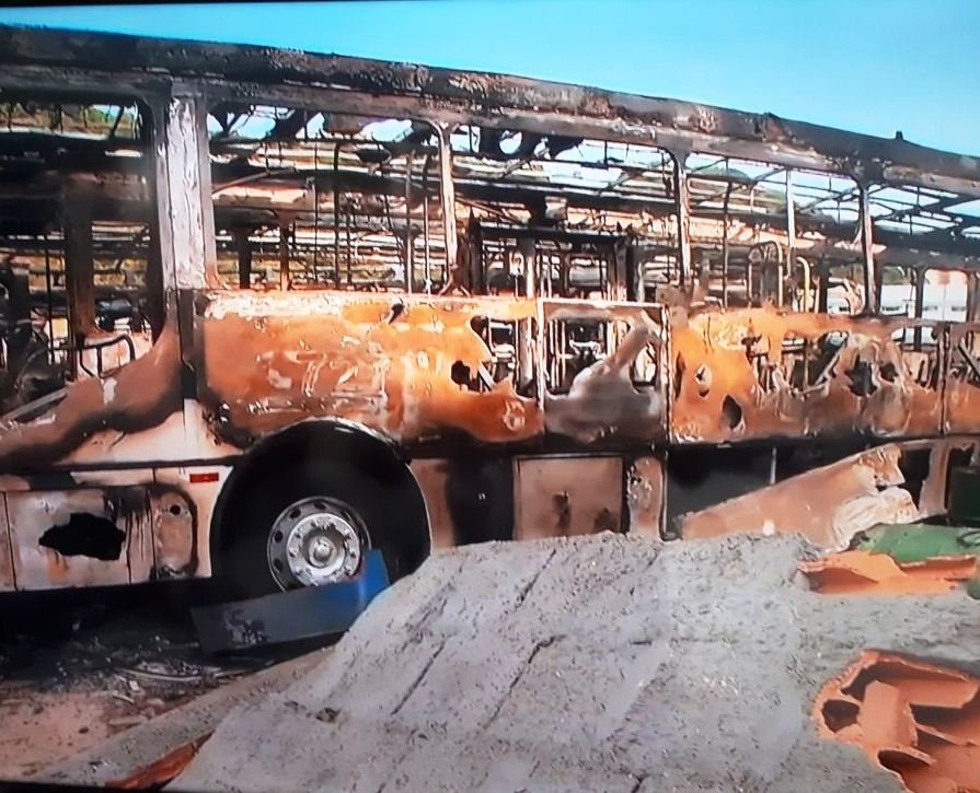 Incêndio atinge garagem da antiga BTU em Brotas; ao menos 48 ônibus foram queimados