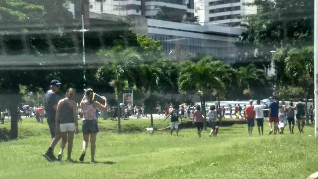 Um grupo de manifestantes realiza um protesto na Avenida Juracy Magalhães, na tarde deste domingo (29). O ato é contra o desmatamento no canteiro central em decorrência das obras do Bus Rapid Transit (BRT), iniciadas há um mês. De acordo com a Superintendência de Trânsito de Salvador (Transalvador), menos de 100 pessoas se reuniram na área do canteiro, nas proximidades do Hospital Aliança, por volta das 11h. Como a manifestação não acontece na pista, o tráfego não foi prejudicado.