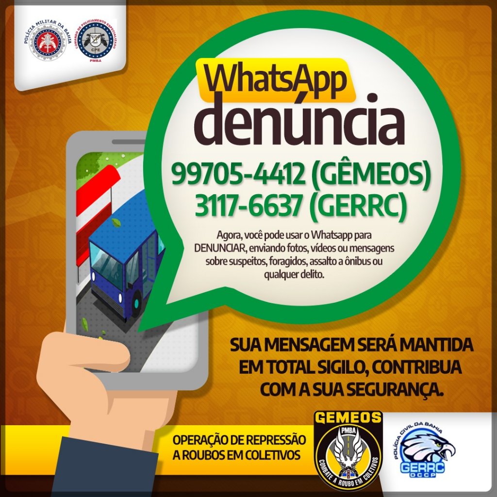 A Operação Gêmeos, da Polícia Militar, e o Grupo Especial de Repressão a Roubos em Coletivos (Gerrc), da Polícia Civil, disponibilizaram os números 99705-4412 e 3117-6637 para receberem denúncias da população sobre roubos a ônibus.