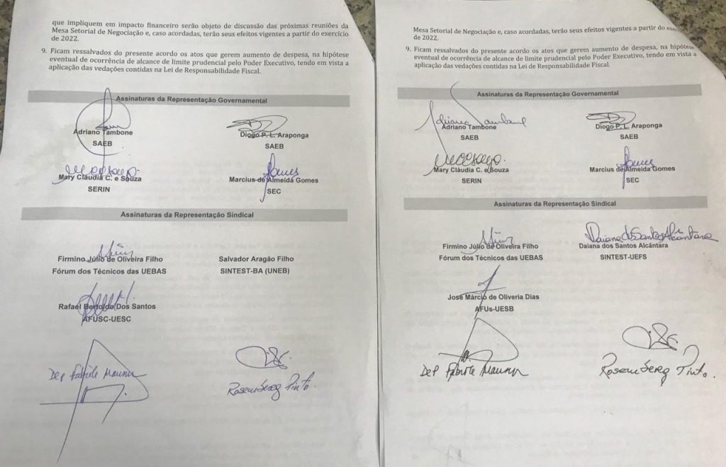 O governo do estado fechou o acordo com técnicos e analistas das quatro universidades estaduais e, com isso, evitou uma greve da categoria. O pacto assinado entre as partes prevê a reestruturação da tabela de vencimentos dos técnicos administrativos das universidades estaduais e recebeu, nesta terça-feira (28), o aval dos servidores da Universidade Estadual de Feira de Santana (Uefs) e do Sudoeste da Bahia (Uesb), instituições que ainda não tinha assinado o acordo.